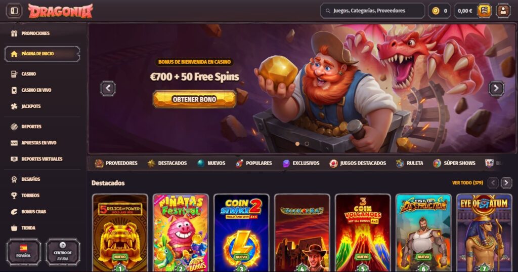 Sí, Dragonia acepta jugadores de España. El sitio está en español, acepta euros y ofrece métodos de pago populares en el país.