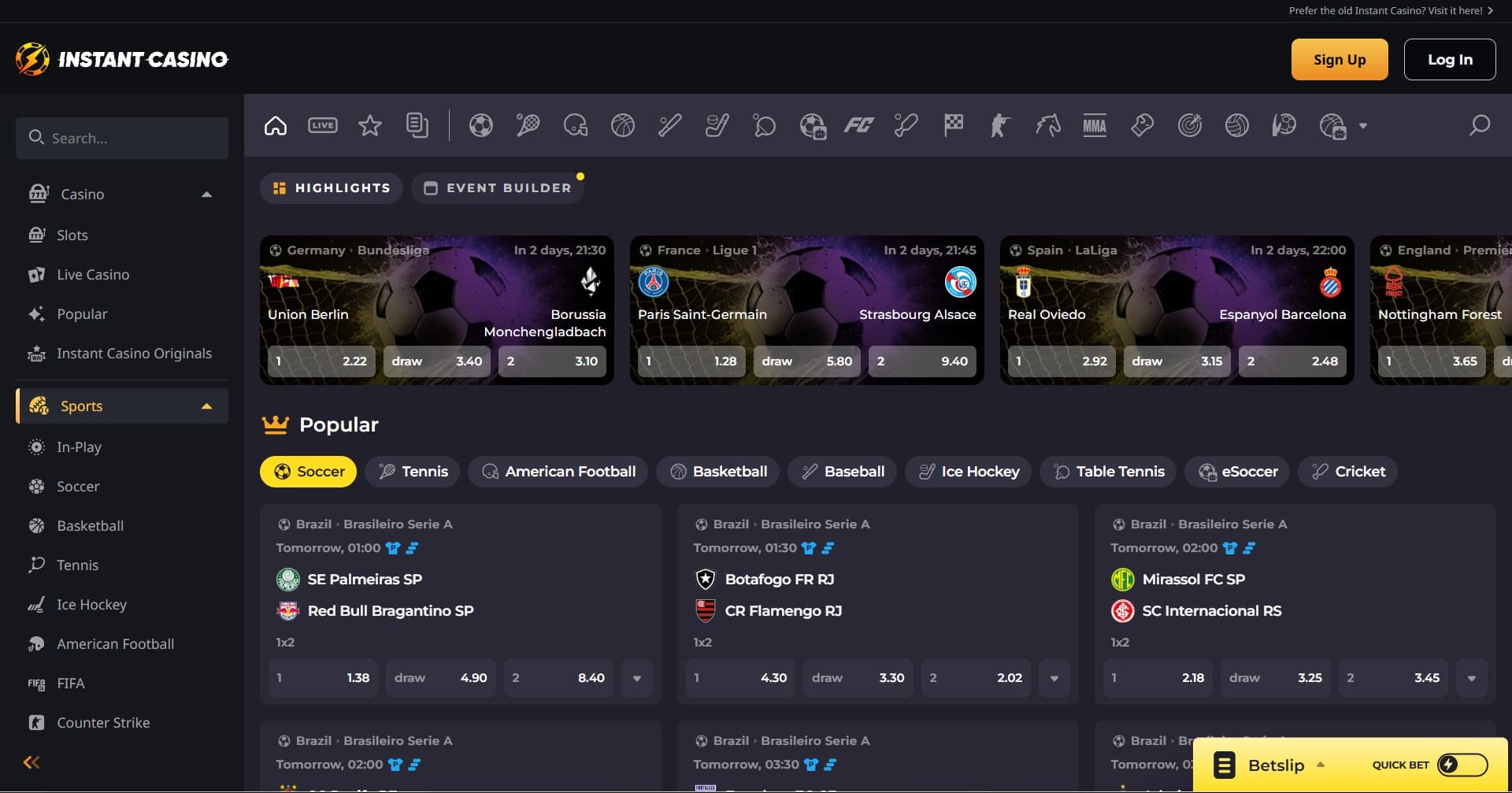 Instant ofrece una variedad de bonos tanto para jugadores de casino como para apostadores deportivos. El casino Instant promociones incluye torneos diarios, cashback sin condiciones y un programa VIP con recompensas exclusivas. Si buscas bono de bienvenida Instant, aquí encontrarás uno de los más generosos del mercado.