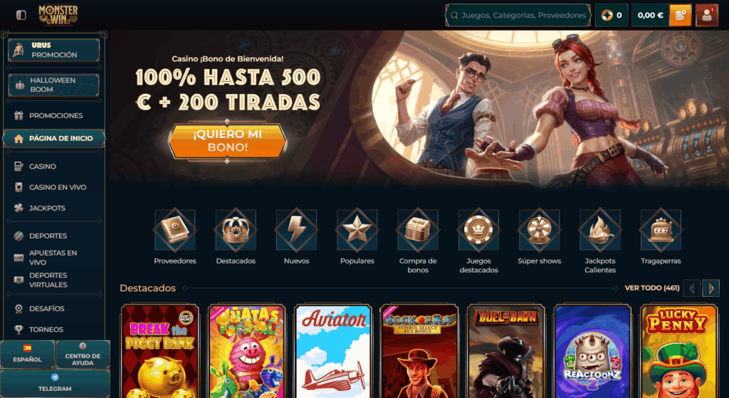MonsterWin es un sitio relativamente nuevo que arrancó en 2024 bajo la licencia de Costa Rica. Opera bajo la empresa Simba N.V. y se dirige principalmente al público europeo. Ofrece tanto opciones de casino como de apuestas deportivas, con énfasis en las criptomonedas y métodos de pago modernos. La oferta incluye más de 90 proveedores de juegos, streaming en vivo para eventos deportivos y varios torneos semanales.