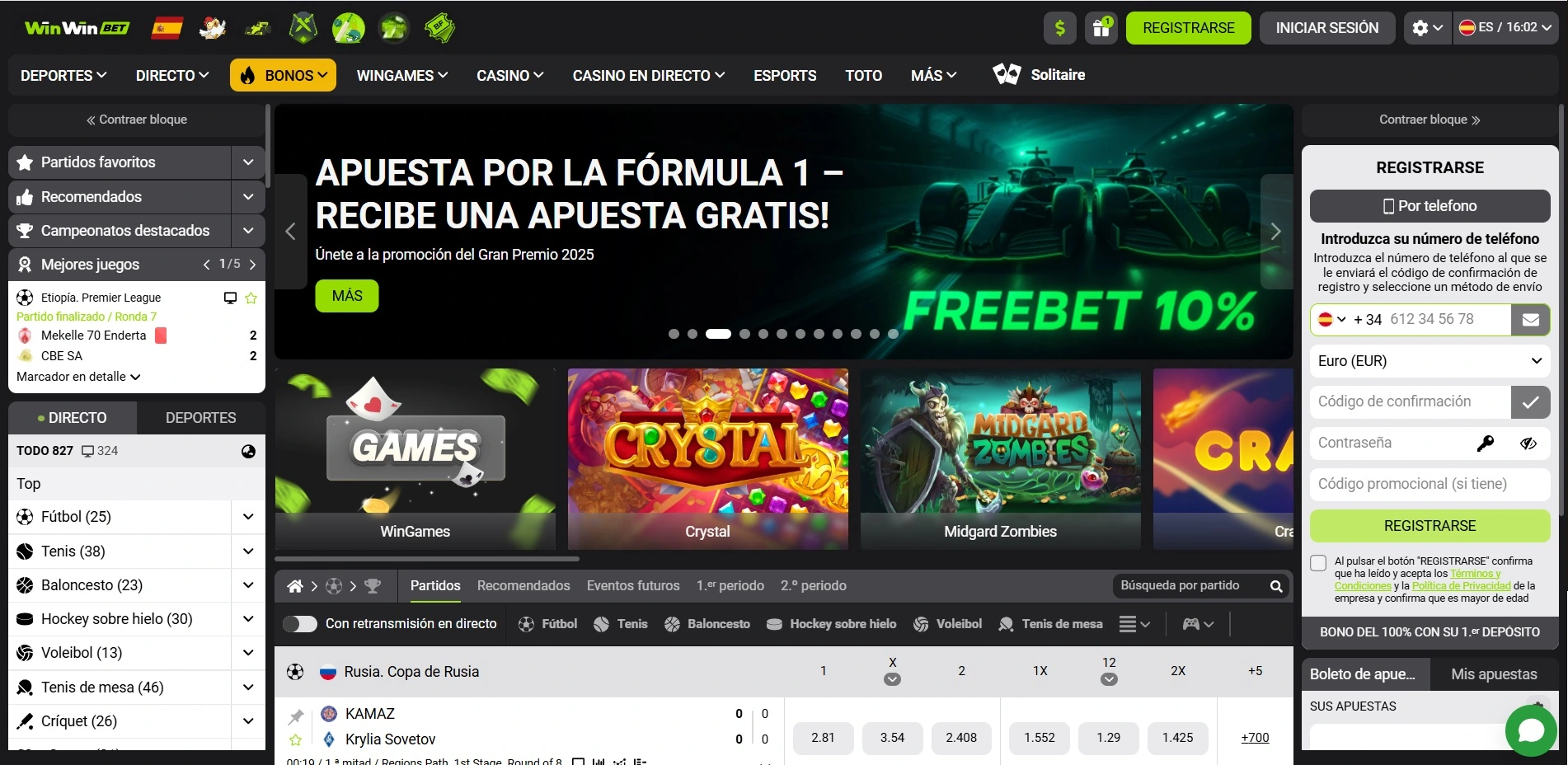 La casa de apuestas online WinWin cubre más de 30.000 eventos en vivo mensuales. No solo fútbol y baloncesto; hay desde hockey hasta dardos. Las cuotas son competitivas y la cobertura pre-partido es extensa. En un partido típico de La Liga accedes a 150+ mercados: resultados, corners, tarjetas, tiros a puerta. Las apuestas en vivo WinWin actualizan cuotas en tiempo real con latencia mínima.