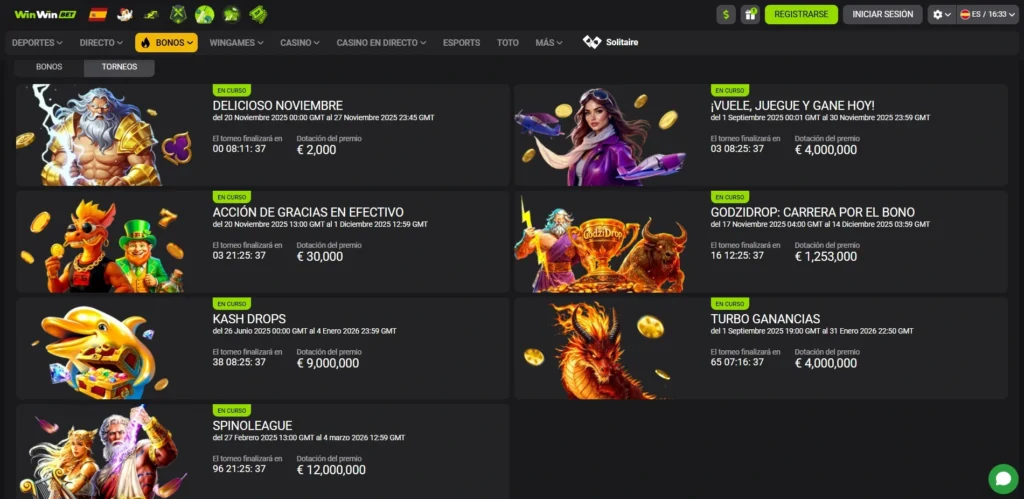 WinWin mantiene varios torneos con premios grandes. Estos cambian regularmente, pero siempre hay nuevas competiciones.